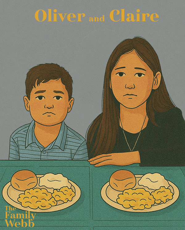 Claire and Oliver are played by real-life siblings, Lily and Gideon Agena. Two adorable and talented children who improvised most of their lines, while sounding just like real children! (Which is a lot harder than it sounds).